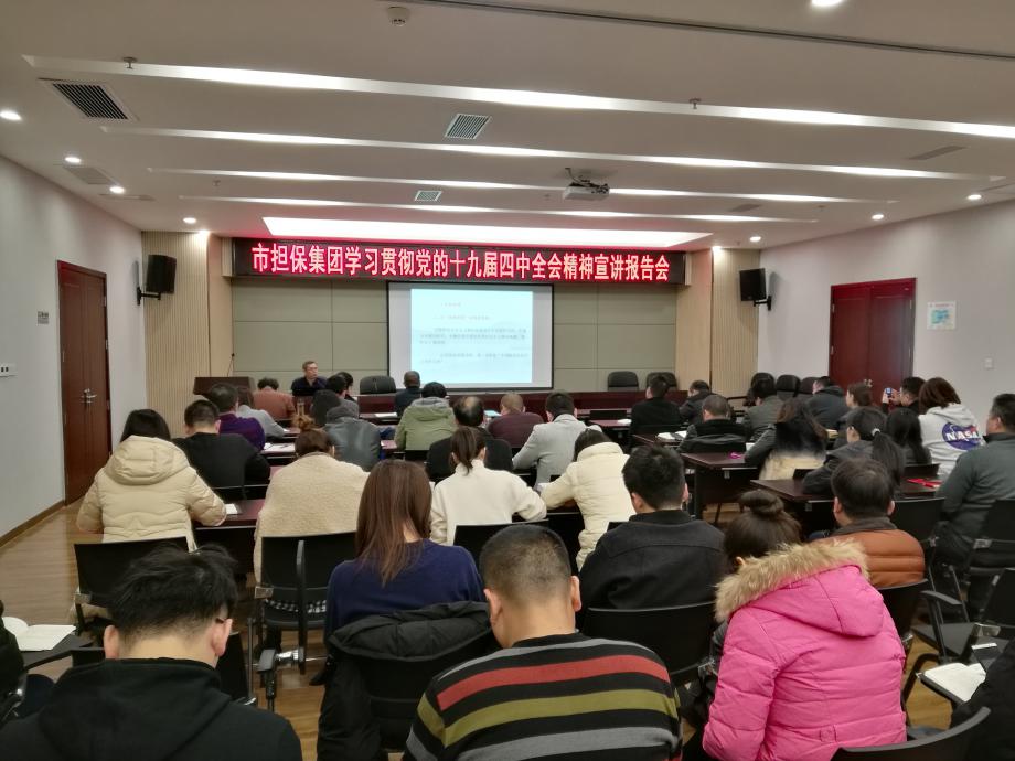 同日下午,市擔保集團邀請市委宣講團成員,市社科聯副主席徐凌宣講十九屆四中全會精神,徐凌從認清重大意義 、堅定制度自信、明確目標要求、把握重點任務、提高治理效能四個方面進行深刻講解。